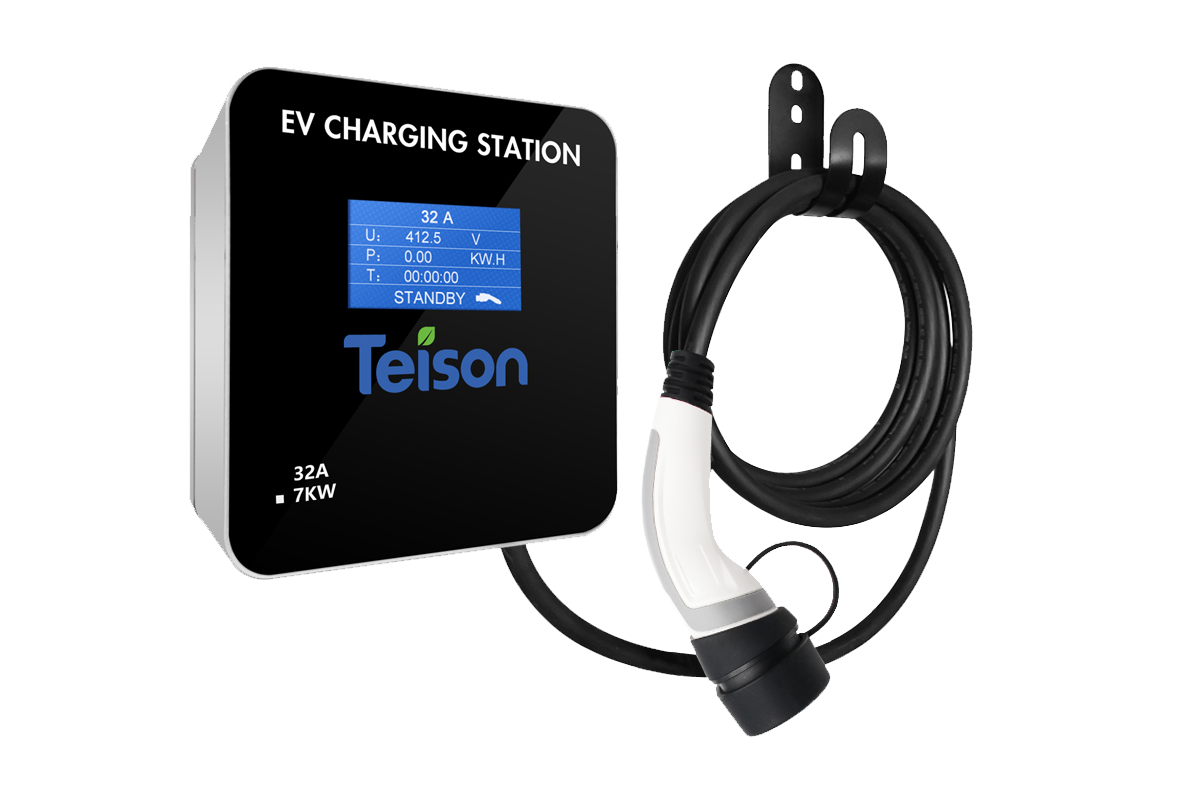 Finns med olika laddningskablar, som typ 1 och typ 2. Teison EV wallbox tar bort besväret med att dra in och ut laddningskabeln ur bilen.