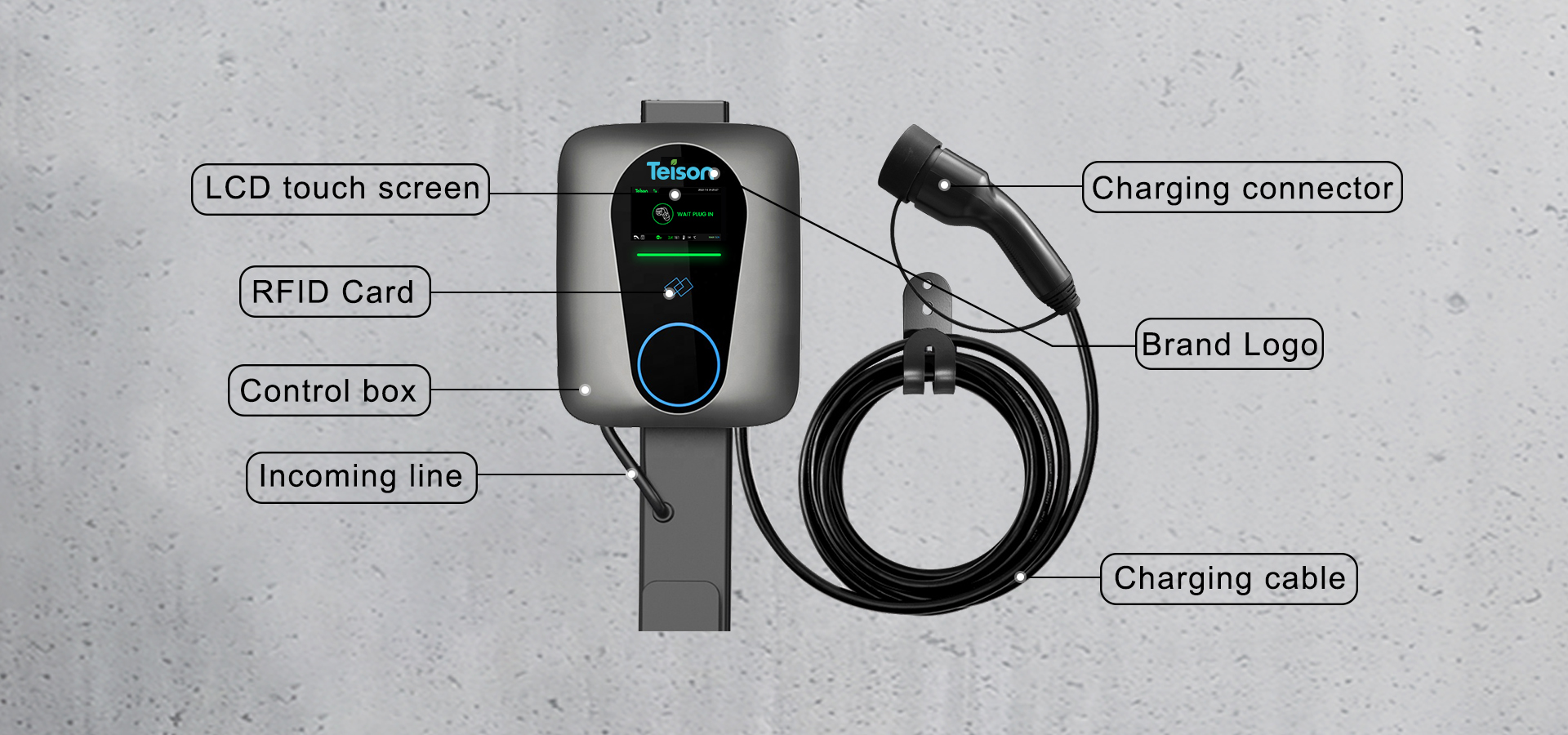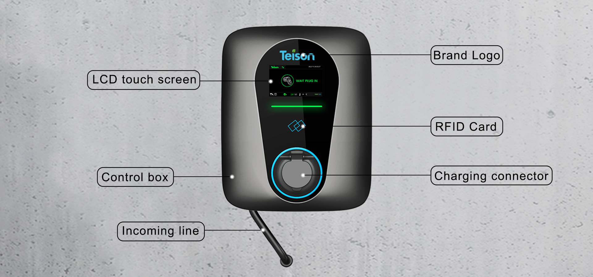 Laddaren har ett integrerat smartkort och kommunikationsfunktion, och väggboxen är utformad enligt IP65 och kan användas både inomhus och utomhus. Den stöder OCPP 1.6J-protokollet och RFID. Ägare kan samla in all data på plattformen och hantera laddaren, samt behärska laddarens status. För att uppnå verklig smart laddning.